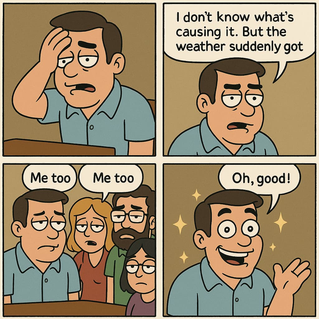 思うに、「自分だけが体調不良で、しかも重大な病気の兆候だったらどうしよう・・」という漠然とした不安を抱えていたにもかかわらず、「みんなもそうなら、これが普通なんだ!」という安直かつ楽観的な解決に至ったことで、急に脳が活性化し始めたのだ。