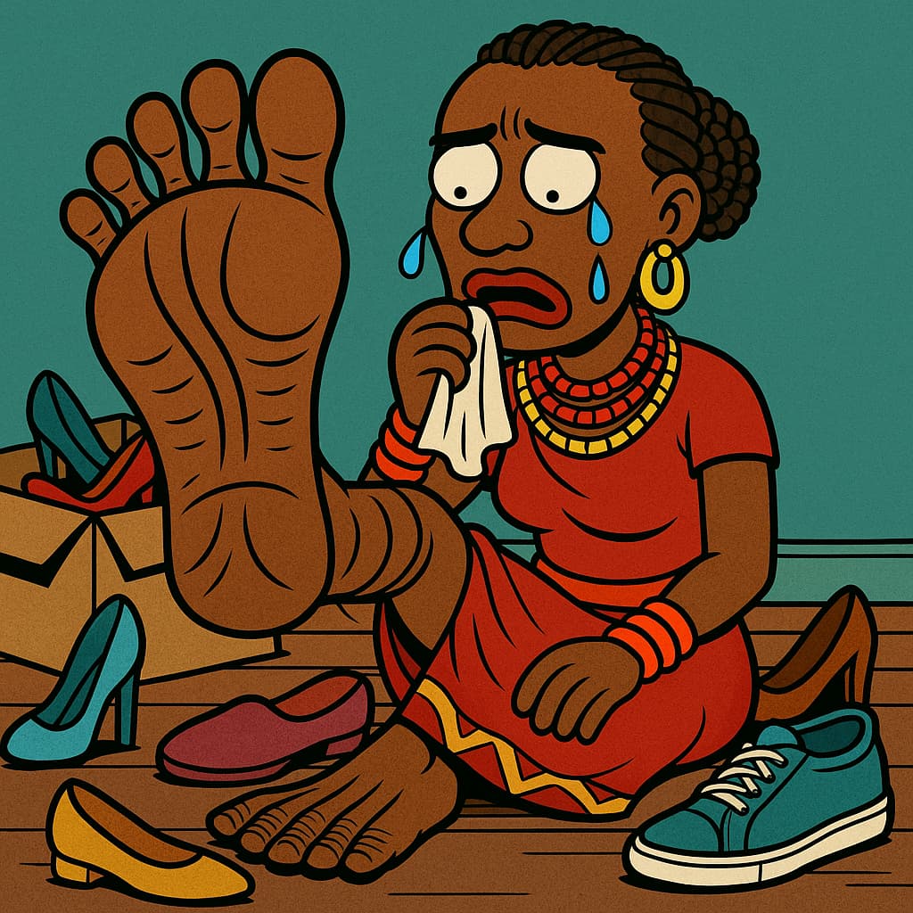 そのため、辛うじてつま先を突っ込むことはできても、小指までスッポリ入ることはない——そう、足底のみならず足指までもが丸々と太く立派に育ってしまったのだ。まるでマサイ族の足のように!!