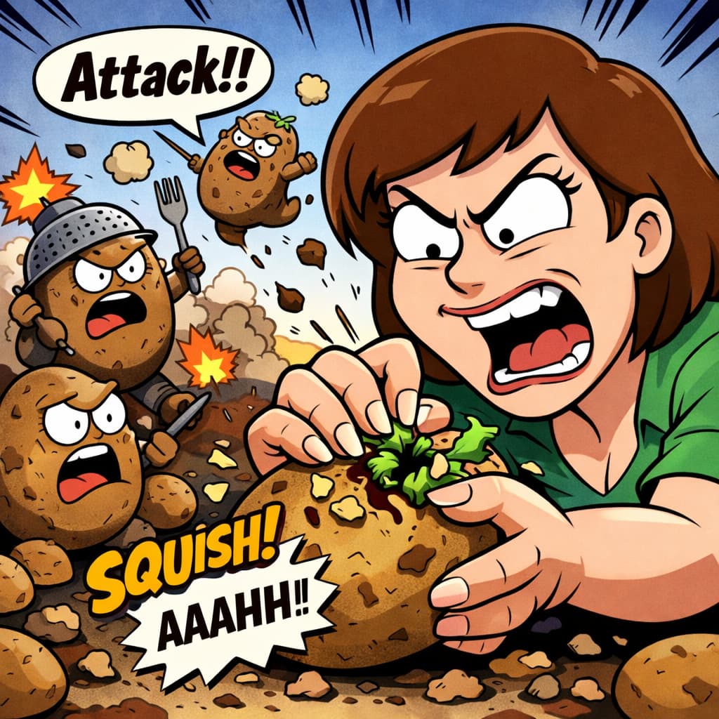 調理器具が存在しない我が家において、この化け物を退治するには己の指とツメを使うしかない——なに、心配は要らない。これまでもずっと、ジャガイモの芽は指でキッチリ取り除いてきたし、場合によってはジャガイモ本体まで抉(えぐ)って毒を排除してきたのだから。