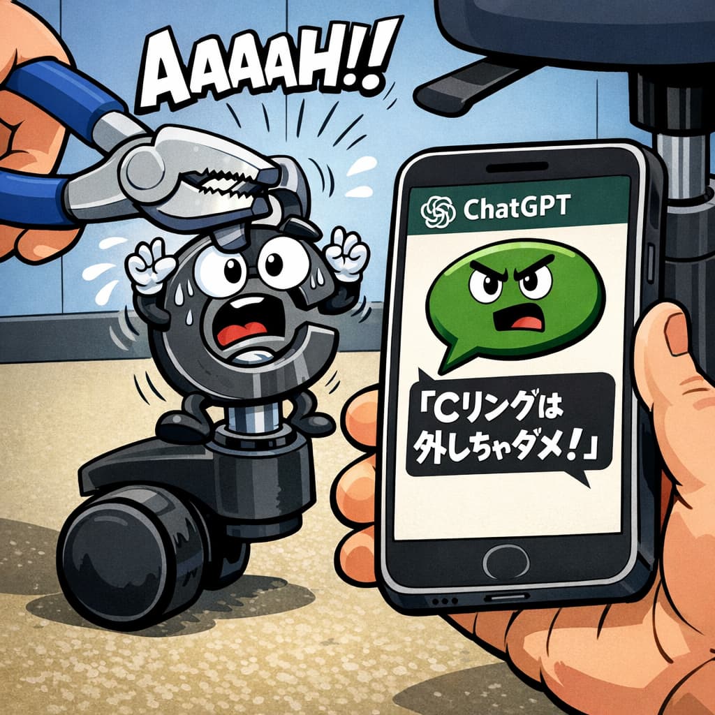 そこでわたしは、スマホでキャスター軸を撮影すると、ChatGPTに「この溝に付いている輪っかが邪魔で椅子が組み立てられないんだけど、これは外すものなの?」と尋ねてみた。さすがに無理かな・・と半信半疑で回答を待ったところ、なんと