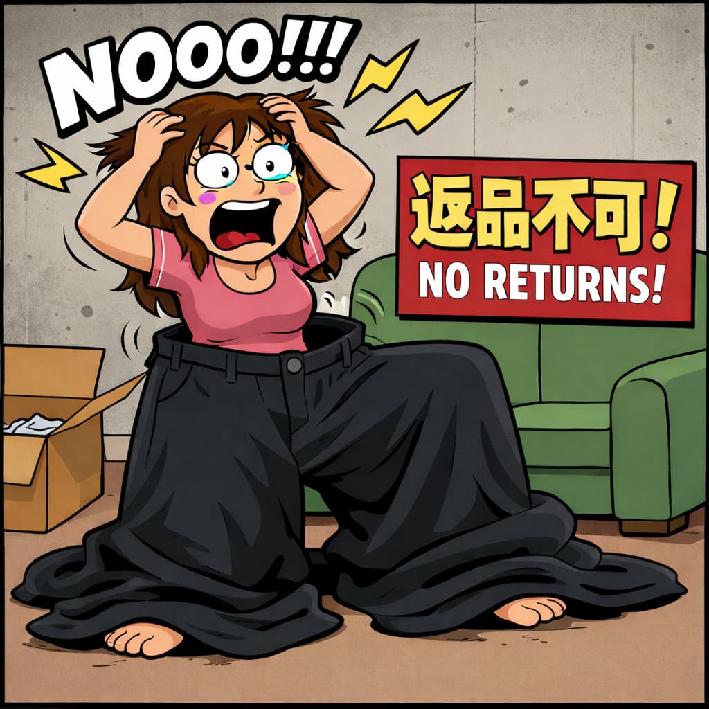 にもかかわらず、届いたズボンは明らかにデカい上に交換不可というオチ——。