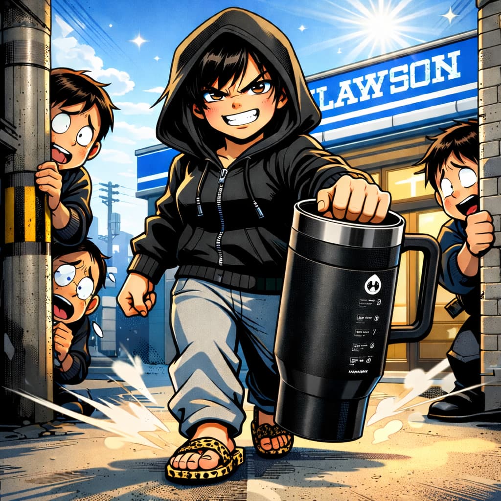 圧倒的な”輩スタイル”に身を包んだわたしは、気がつくと誰からも襲われることなく無事にローソンへと到着していた。それにしても、このマグタンブラーについてあれこれ使い道を妄想するのはいいが、果たして「リアルに鉄槌が下される日」は訪れるのだろうか。